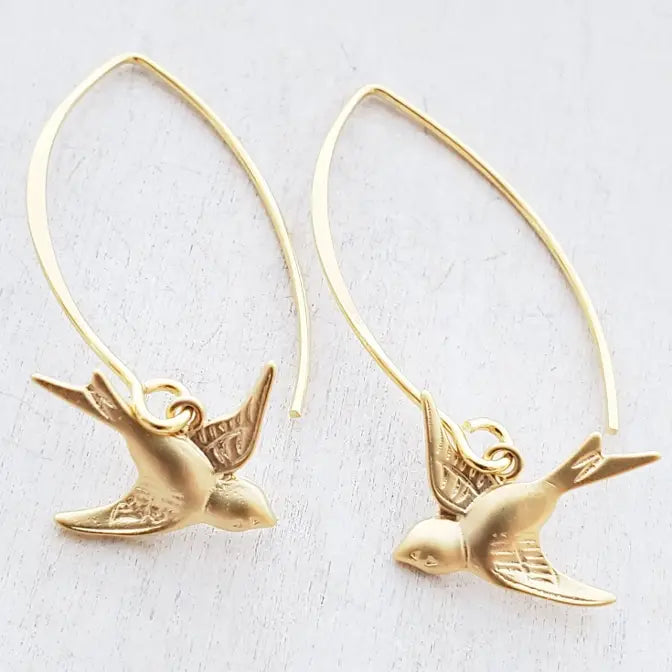 Simple and elegant! This pair of vermeil gold marquise swallow bird earrings are unique and comfortable for everyday wear. The simplistic design makes it easy to coordinate with your outfits
