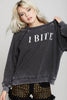 A little sweet, a little savage—our I BITE sweatshirt is made for the girls who keep it cozy but aren’t afraid to show their edge. Crafted from soft, lived-in fabric with a perfectly slouchy fit, this charcoal pullover feels like your favorite vintage find but comes with fresh, cheeky attitude.