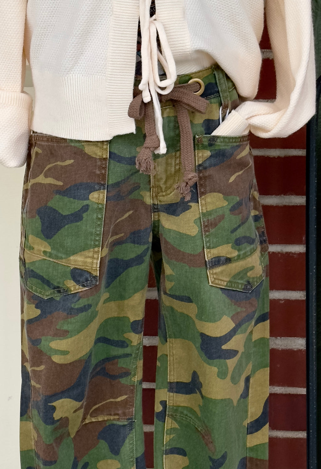 Meet your new off-duty uniform—the Risen Camo Barrel Jeans. Designed with a relaxed, slouchy fit and that on-trend barrel leg shape, these jeans are the perfect mix of comfy + cool. The camo print keeps things effortlessly edgy, while the tie waist adds a laid-back vibe you can style up or down.