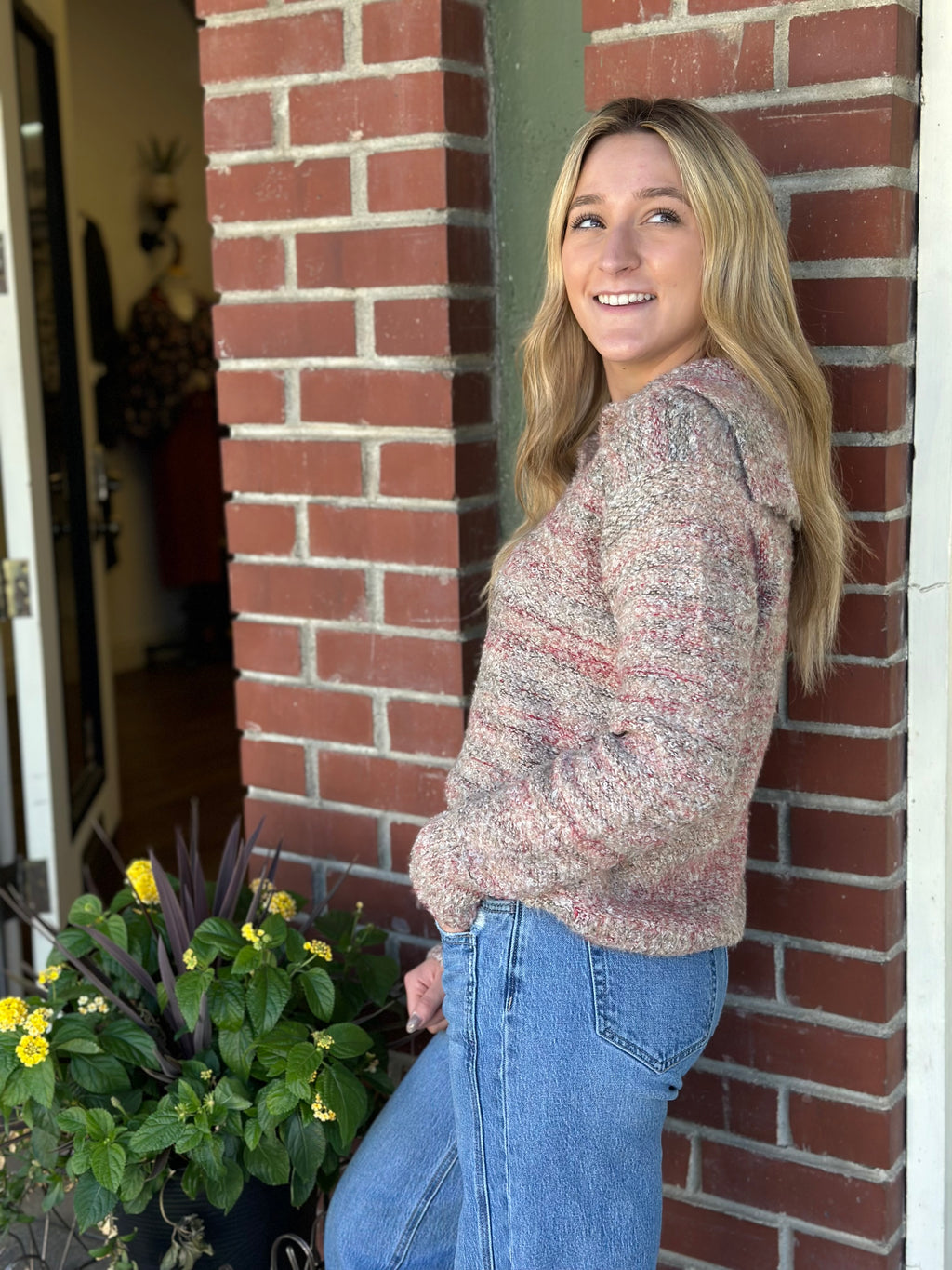 Meet your new favorite throw-on-and-go sweater. This marled knit beauty blends soft blush, taupe, and cream tones for that lived-in, effortless charm. The relaxed fit and subtle cropped length flatter every shape, while the single button neckline adds a touch of easygoing polish. Ultra-soft and plush to the touch, it’s that “I didn’t try, but I still look amazing” kind of cozy. Perfect with your favorite denim and a messy bun for weekend strolls, coffee dates, or just staying cute while staying comfy.