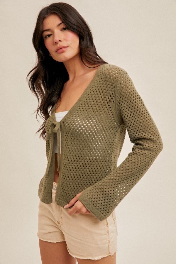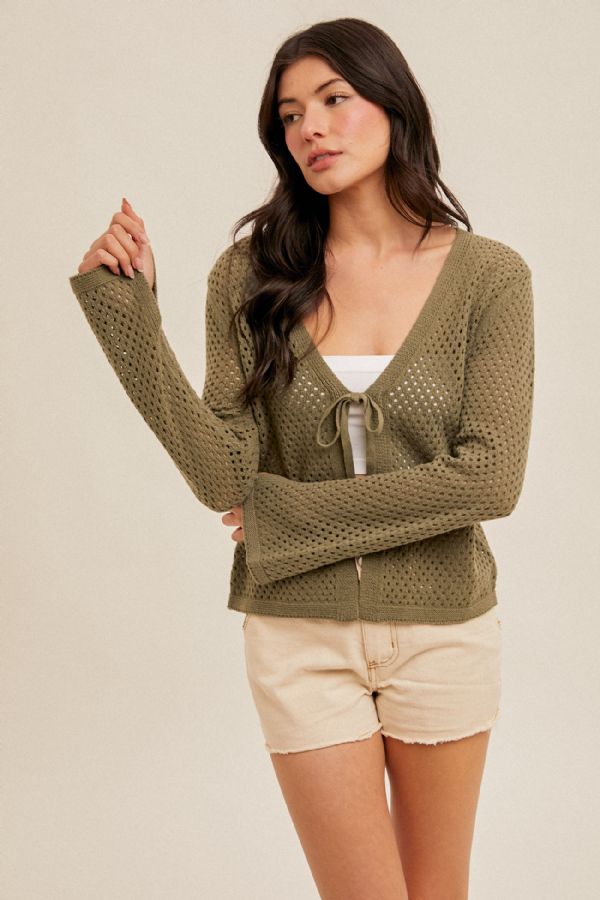 Olive Crochet Tie-Front Cardigan