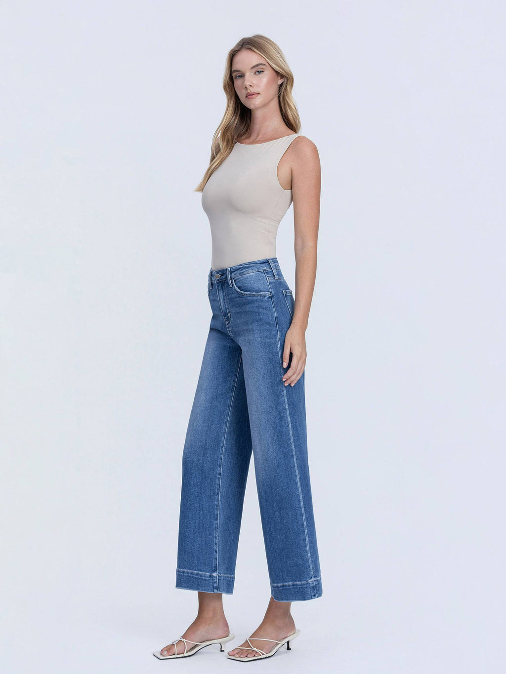 Meet your new denim power move. These high-rise wide-leg jeans take that classic medium wash and elevate it with a clean, structured silhouette that instantly makes any outfit look intentional. The wide leg drapes beautifully (AKA: they glide, they don’t cling), and that crisp cuff-style hem adds just enough detail to make people whisper “where did she get those?”