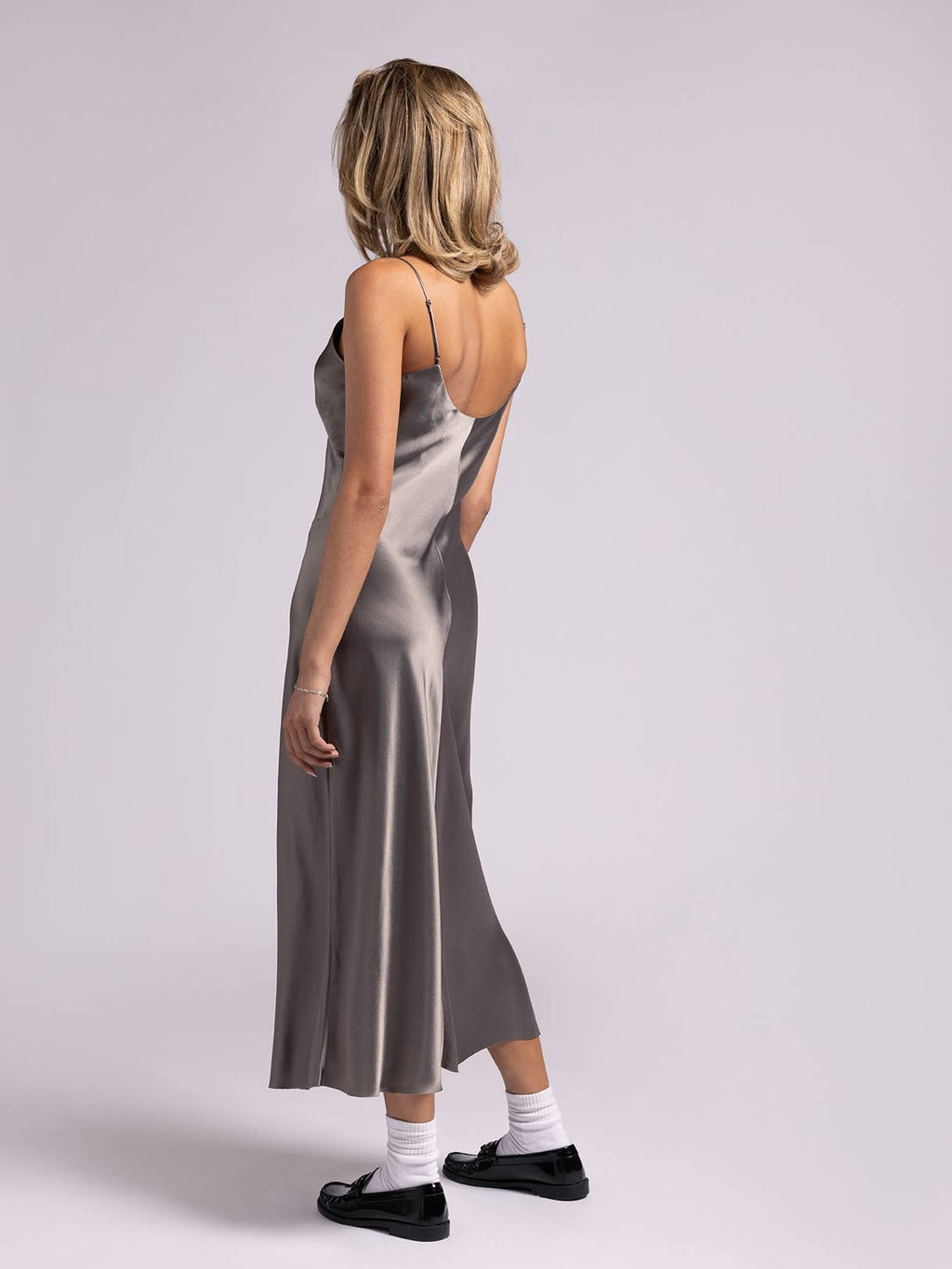 Delicate spaghetti straps keep it minimal and sleek, while the V-neckline adds just enough drama to feel special without trying too hard. Dress her up with heels and a clutch, or throw on a chunky sweater and boots for that cool-girl, off-duty glam. She’s versatile, she’s timeless, she’s that girl.